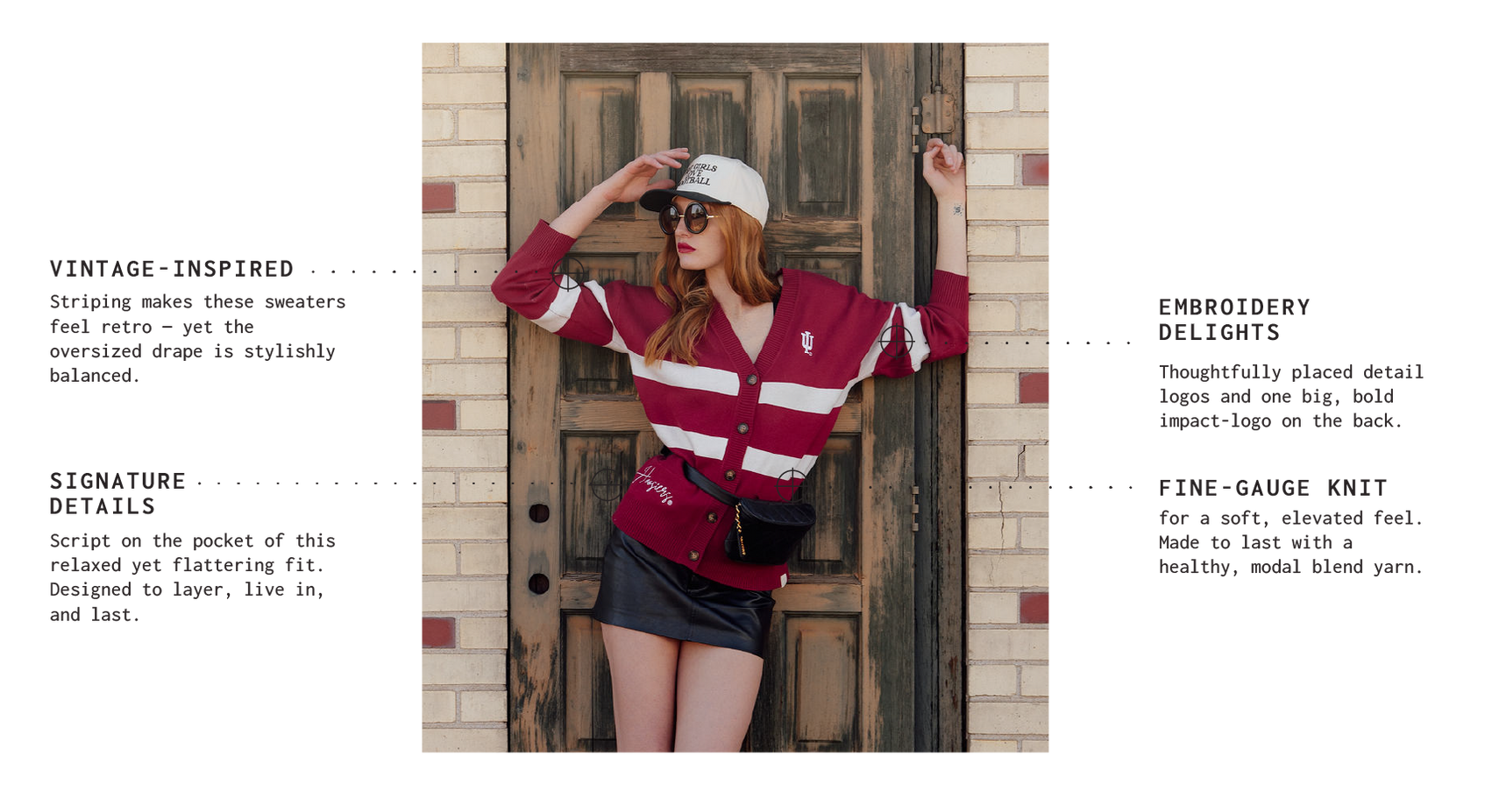 The Vinti Cardi is oversized and goes great with everything. Dress it with jeans for a casual look, or dress it up with a skirt. Looks just as good at dinner as it does at the game.